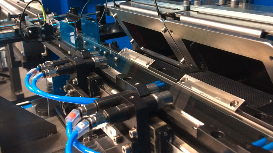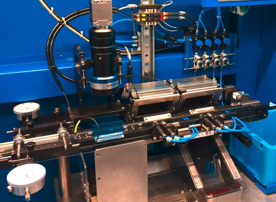 La mécanique de la QMTInspect-200 a été complètement repensée afin d'améliorer la conduite des pièces et de permettre un réglage beaucoup plus précis. Ces modifications permettent une augmentation de la cadence de 50% (20'000 pièces par heure pour des pièces de 20mm de longueur) ainsi qu'une baisse du temps de réglage lors du changement de référence.