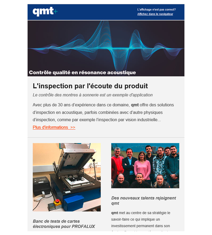 Nous vous informons, par un email mensuel, sur l'actualité qmt et les nouveaux produits