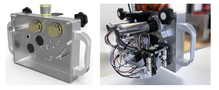 Conception et réalisation d’un système embarqué permettant la mise en dynamique du produit avec un contrôle permanent du couple appliqué. Ce système est composé de deux moteurs avec leurs contrôleurs associés, d'une mécanique ajustée à l’échantillon testé et de deux pignons d’entraînement